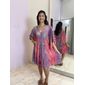 Vestido Curto Místico Selene Tecido em seda indiana Veste do P ao Plus Size Elastex na cinturaAmarração no busto Mangas flare